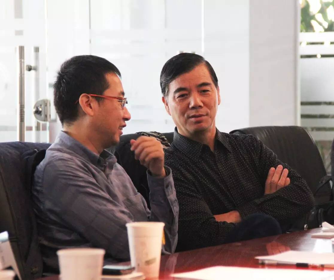 (z6.com尊龙电力董事长庞文魁(左)与天津市节约用水事务管理中心原副主任张金鹏教授(右)会谈)